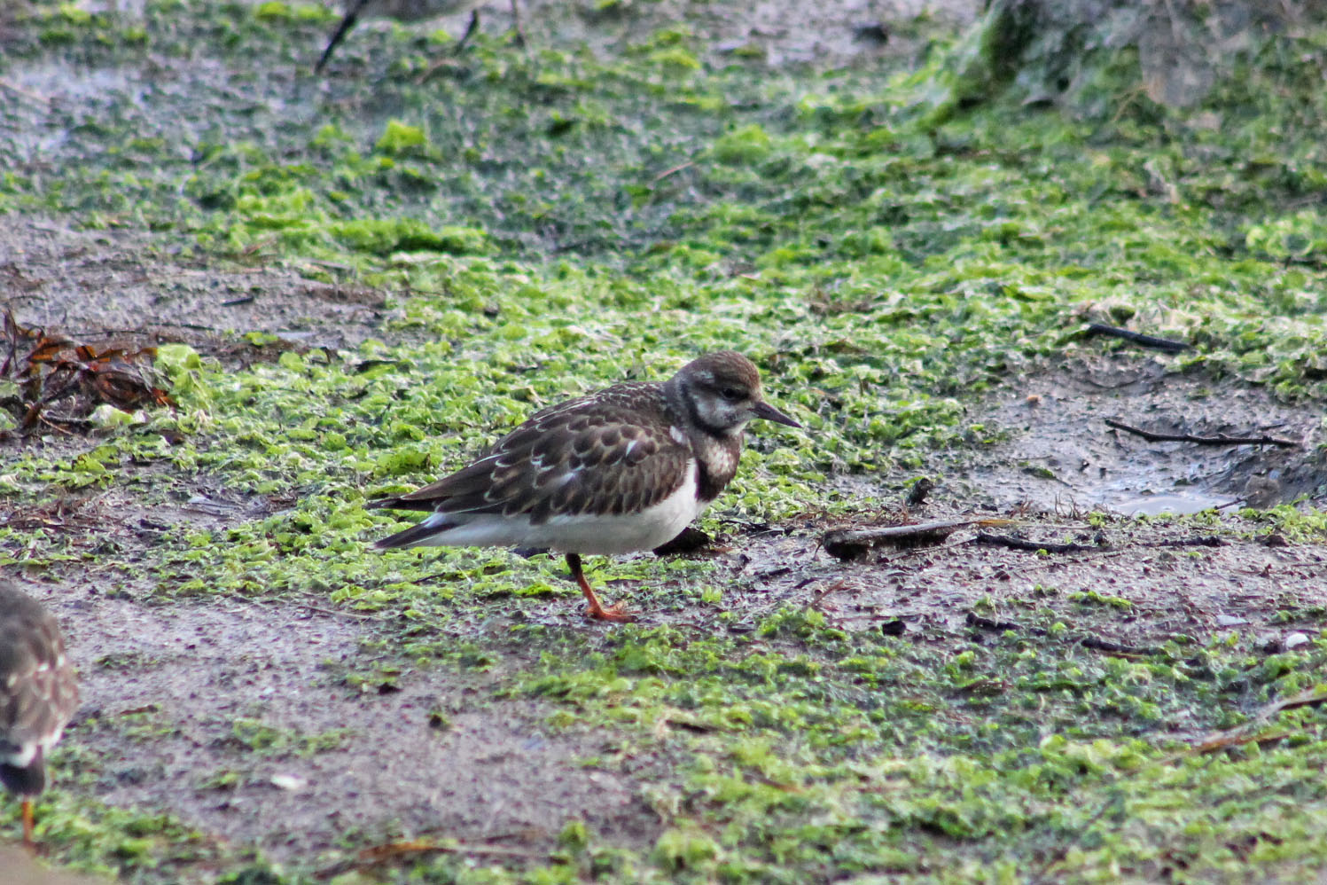 Con ellos había algunas especies más de limícolas. Unidos a los tres correlimos pudimos ver a los preciosos Vuelvepiedras (Arenaria interpres), que en esta zona podrían llamarse Vuelvealgas, ya que estaban afanados en levantar cada centímetro de verde de las zonas a las que las quedaban unos minutos para desaparecer bajo el agua. Además había, y fueron los que más cerca se pusieron, algunos Chorlitejos Grandes (Charadrius hiaticula) que podréis encontrar en las fotos anteriores. Algo más separadas había un grupo de Agujas Colinegras (Limosa limosa), algunas Agujas Colipintas (Limosa lapponica) y un Archibebe Claro (Tringa nebularia). Más a lo lejos descansaban en una isleta un grupo de Ostreros Euroasiáticos (Haemantopus ostralegus).