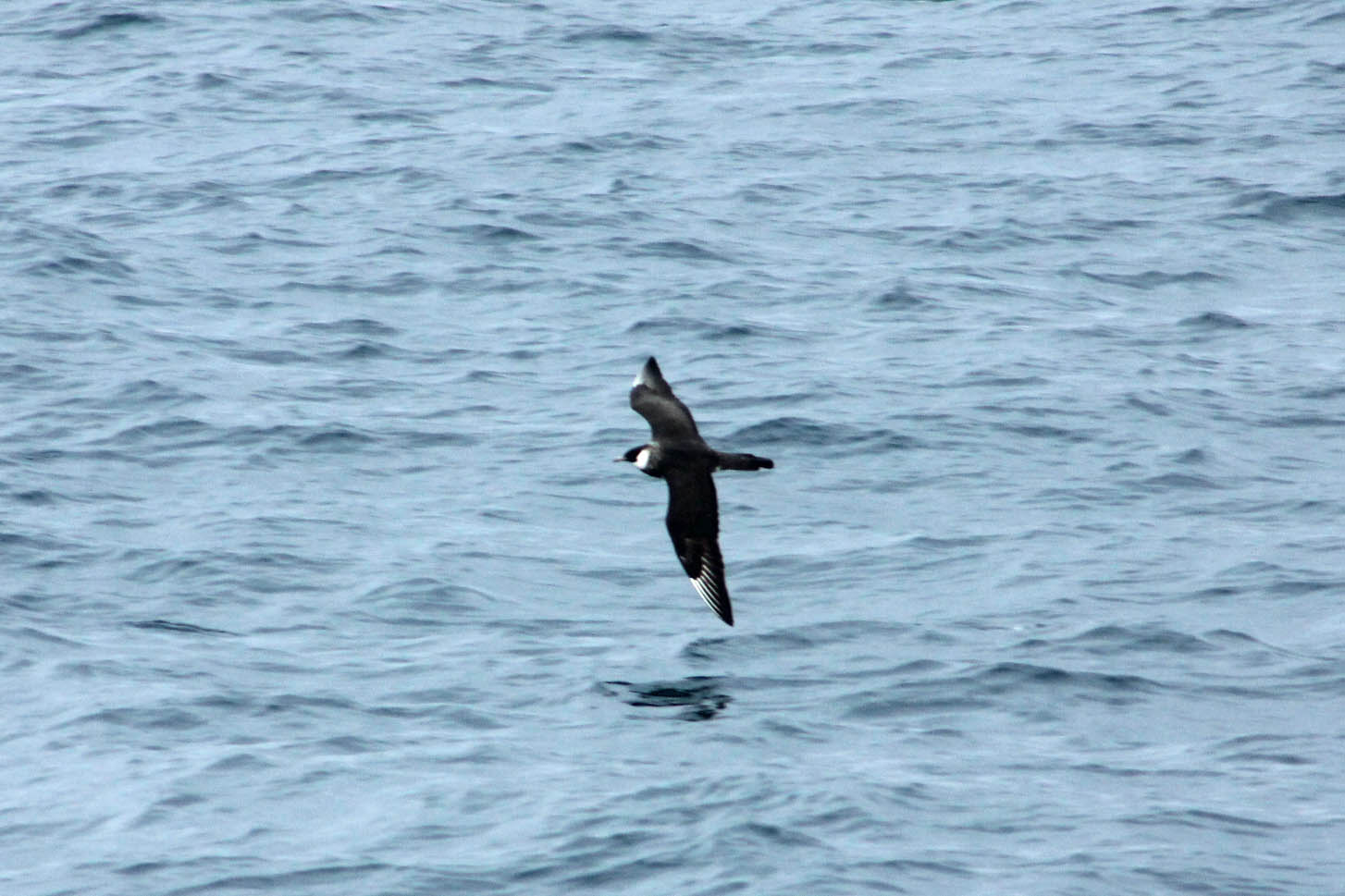 Bien es cierto que no fue el primero ni el último de los págalos que apareció pues en total vimos tres especies. El más tempranero fue un págalo parásito (Stercorarius parasitus) que apareció por la popa y que en nada abandonó nuestra posición para no dejarse ver más. No tardó mucho en aparecer tras él, el primero de los pomarinos. En este caso era un adulto en fase clara que aunque no se acercó mucho al barco si que lo hizo lo suficiente como para poder disfrutar de este bimbo para nosotros a placer pudiendo observar con claridad su preciosa caperuza negra sobre un cuello amarillento y un collar oscuro que destaca sobre el vientre blanco. Todo ello con las partes superiores oscuras, las macnahs blancas de la base de las primarias y su llamativa cola, rasgo inconfundible cuando lo ves cerca. Más tarde se volvió a acercar al barco de nuevo para, ésta vez más cerca, darnos una observación inolvidable.