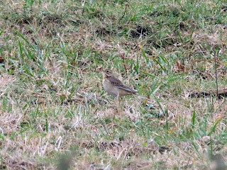 El bisbita de Richard (Anthus richardi) era mi objetivo prioritario este invierno y con las primeras luces del primer día en Cantabría ya estábamos de camino a una zona costera cercana a Liencres donde se estaban viendo varios ejemplares. Empezamos a prospectar los prados pero no había apenas movimiento. Cambio de zona y al poco salieron volando dos ejemplares de este bisbita de mayor tamaño que los pratenses y que reclamaron con su sonido de gorrión. Volaron sobre mi cabeza hasta que se posaron a escasos metros para deleite de todos nosotros. Fue una observación inolvidable donde pudimos ver su color uniforme en pecho y ripa, su macha en la garganta y esa pose que le mantienen erguido sobre la hierba. Es maravilloso disfrutar en la costa cantábrica de este viajero llegado de Asia (Siberia, Kazajstan y China). El viaje empezaba de manera inmejorable (gracias a nuestros amigos leoneses José Alberto e Iker por su ayuda).